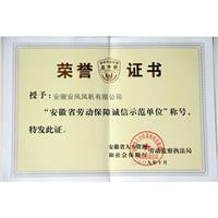 2009.10-安徽省勞動保障誠信示范單位榮譽證書